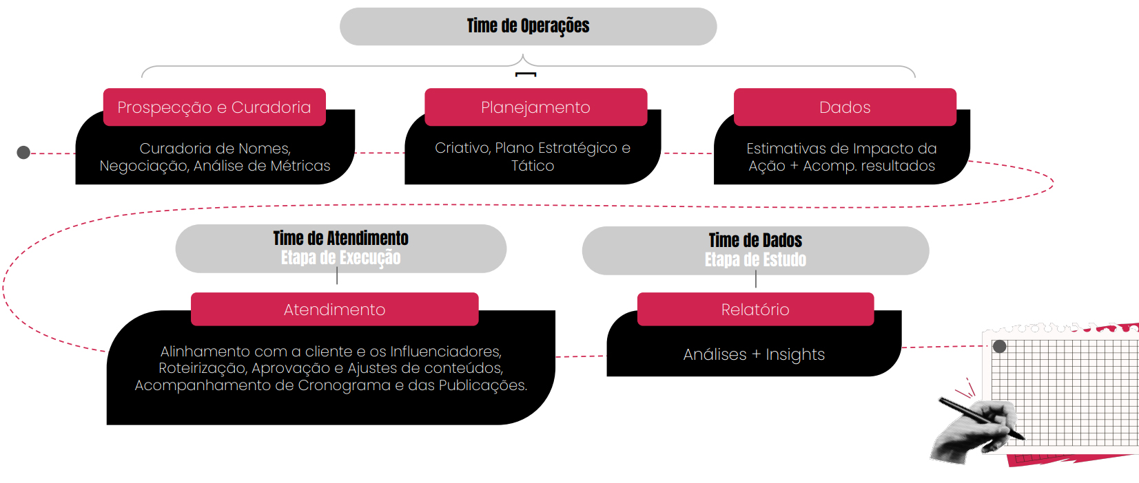 Estabelecemos parcerias sólidas com os influenciadores e com as assessorias para que os fluxos e prazos sejam sempre respeitados.